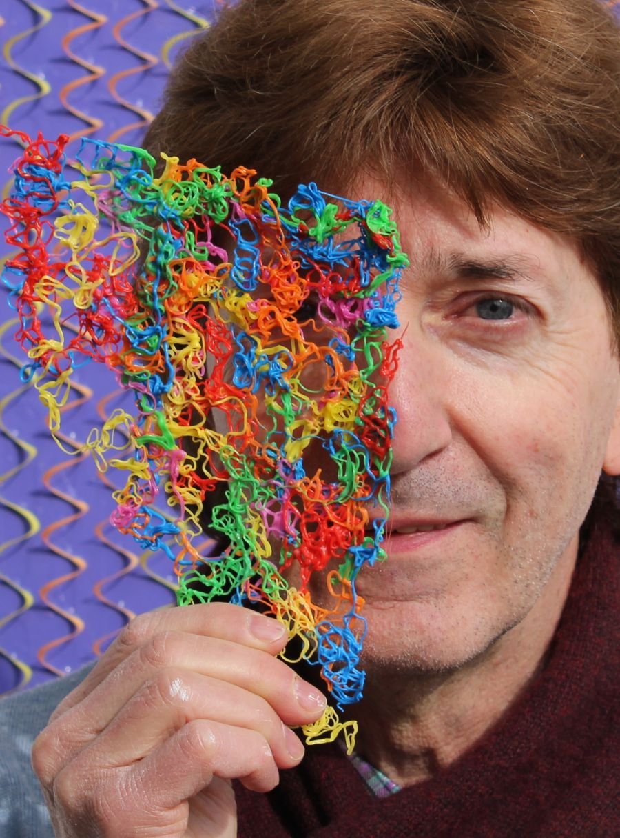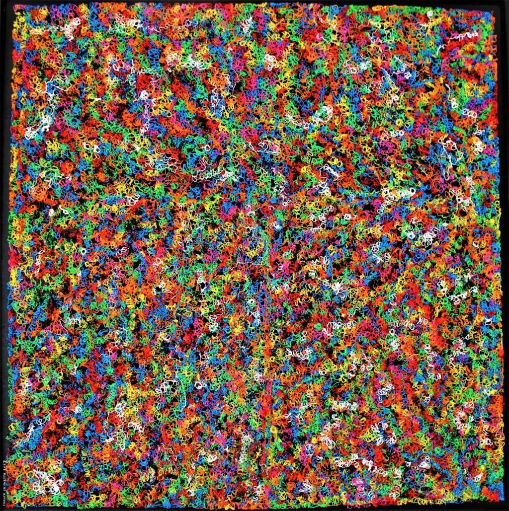 Dalla plastica alle fibre tessili, la materia si trasforma nelle mani dell’artista, che la esplora, smonta, seleziona e valuta con la curiosità di un bambino-scienziato, nutrendosi di esperienze maturate in decenni di sperimentazione artistica.