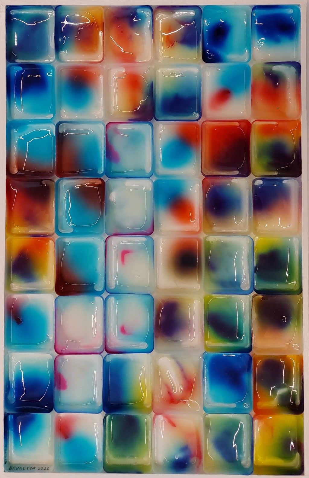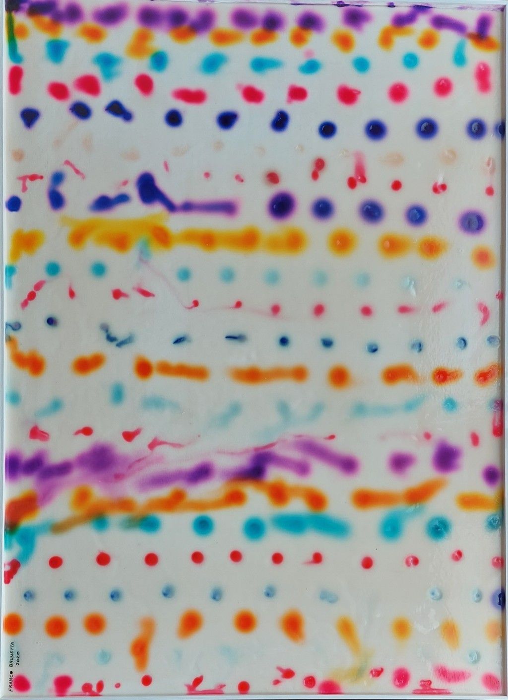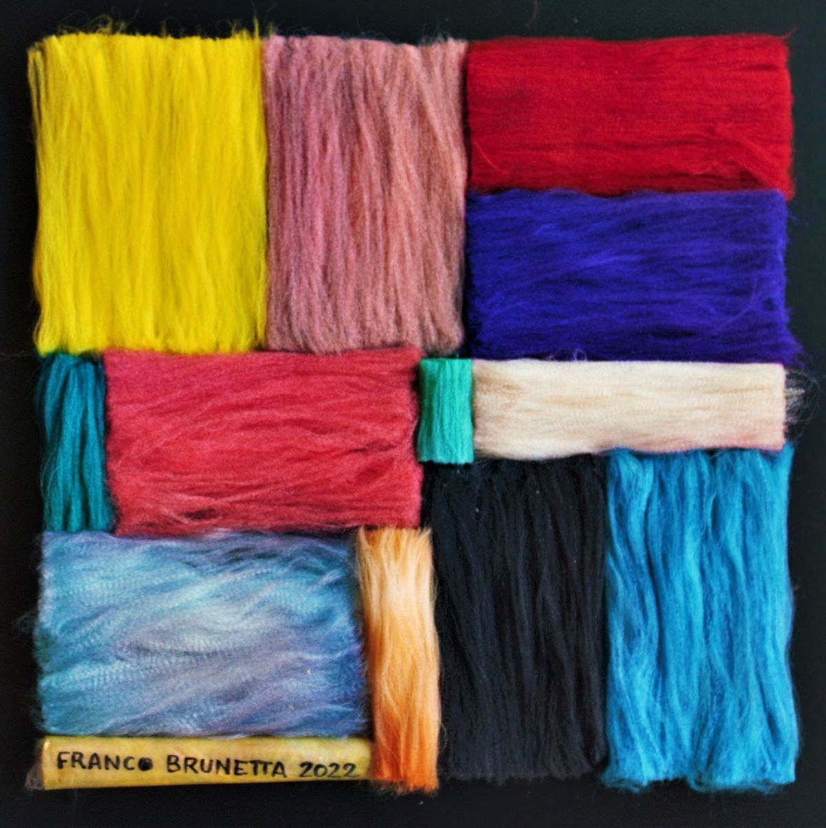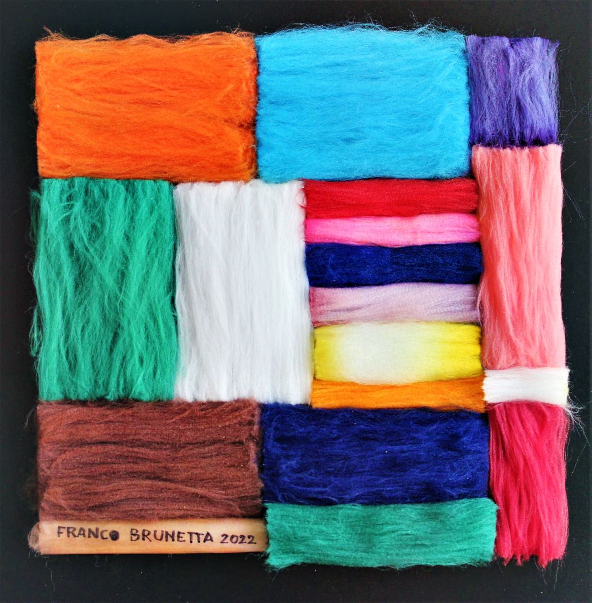 Una tavolozza brillante e una grande varietà di materiali eterogenei dominano l’immaginario di Franco Brunetta, che intravede anche nel medium più insolito infinite potenzialità espressive.